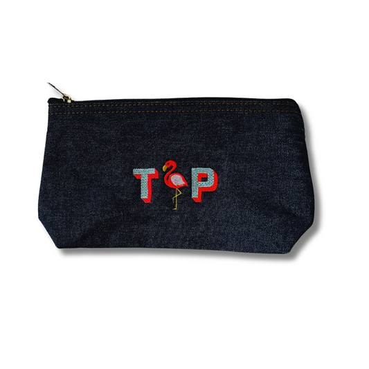 Denim Pouch - Oversize Two-Tone Initials or Short Name